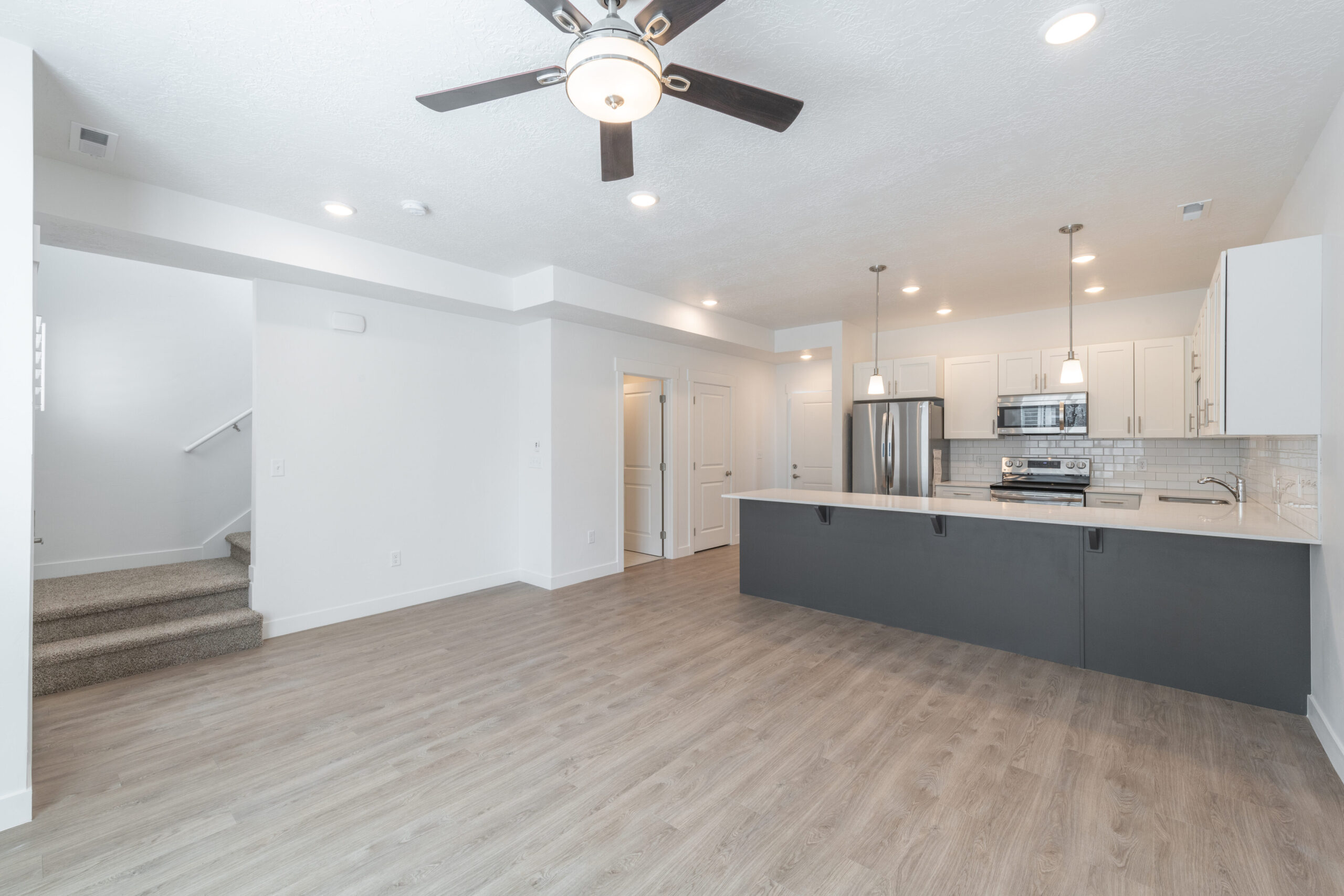 Brand new  Townhome in West Valley! Just off of 3500 South and 5400 West, this new Development is located right by the Ride share, perfect for transportation! This open spacious townhome is ready for a Resident! Stainless appliances, Quartz counter and surrounds, Washer/Dryer, and 2 car garage. Three bedrooms, and 2 and 1/2 baths.  Large pantry off of kitchen, lots of light and plenty of room to grow! Access to freeways, shopping, trax, hiking and more