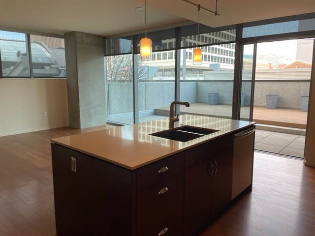 The Regent, unbelievable 5th Floor, Corner Unit with private 400 sq ft terrace, floor to ceiling windows that look out to spectacular North and East, city and mountain views! Relax on the patio and enjoy the views. This 2 bedroom, 2 Full Baths unit has gorgeous hardwood floors, high-end appliances, washer and dryer included, fireplace, Spacious Master Suite with walk-in custom closet. This downtown secure building offers full access to pool, fitness area, club room and more. 1 parking spot with storage. To schedule a showing please call Erica Ekstrom, Marquis Real Estate & Property Management, marquisrepm.com